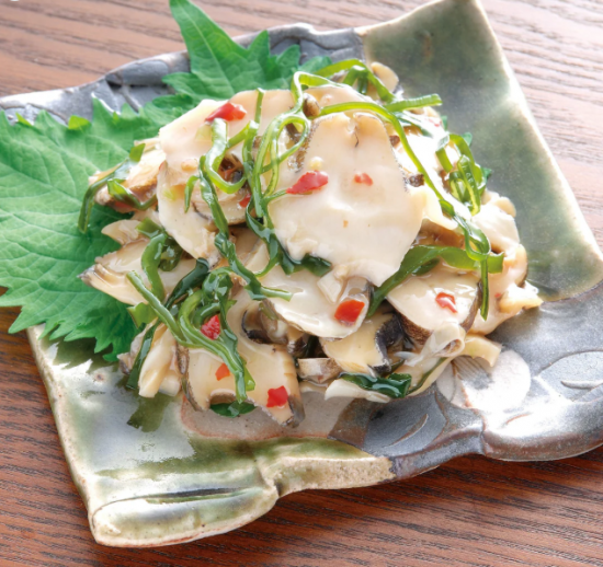 コリコリのあかにし貝と、昆布を和え、わさび味に仕上げました。